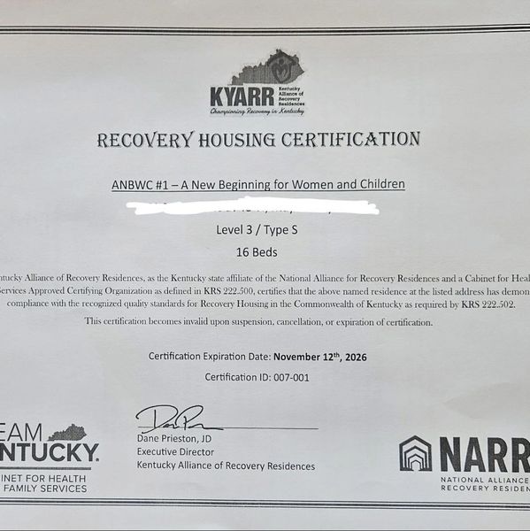 KYARR stands for Kentucky Alliance for Recovery Residence. This process took our staff several months to complete this certification, and we are proud to be a certified sober living residence for the state of Kentucky.